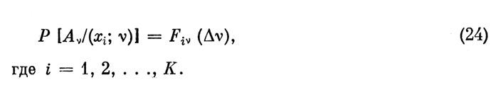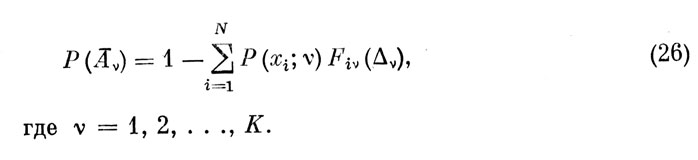 Пусть Аν - случайное событие, отвечающее выполнению этого условия. Найдем его вероятность. Из предыдущего ясно, что условные вероятности Р [Aν/(xi;ν)], характеризующие реализуемость ν-гo отсчета, при условии, что на отрезке Δν объект может находиться в любом из N различных состояний, даются ν-м столбцом матрицы F (N; К; θ) из (17), если во все элементы этого столбца подставить θ=Δν: