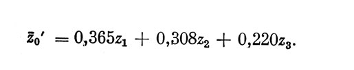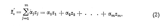 которое позволяет определить среднее ожидаемое (в вероятностном плане) значение оценки z0i. индивида i по внешнему критерию при данной совокупности значений z1i z2i ... zmi оценок индивида по m признакам (индекс i в формуле (2) опущен). Здесь α1, α2, ..., αm - коэффициенты регрессии, а все индивидуальные оценки выражены в нормированном виде в соответствии с равенством