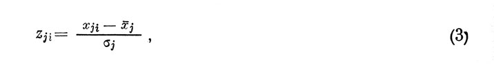 где xj и σj соответственно обозначают среднее значение и среднеквадратическое отклонение совокупности оценок всех индивидов выборки объемом N по признаку j.