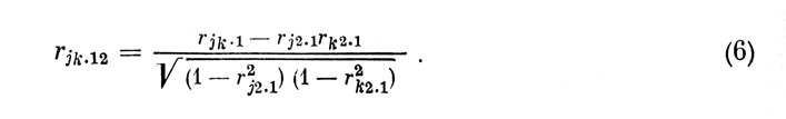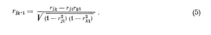 Подобная методика отбора наиболее существенных признаков весьма трудоемка. Значительно проще задача решается методом "просеивания" переменных, предложенным Н. А. Багровым [3] и основанным на последовательном построении матриц частных коэффициентов корреляции после каждого шага отбора признаков для УМЛР.