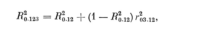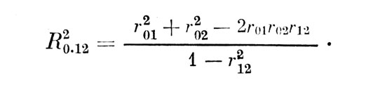 Определим зависимость между квадратами смежных значений КМК, разделенных одним шагом ранжирования признаков. После первого шага, когда выделены признаки №. 1 и 2, имеем: