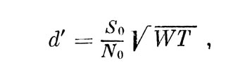 И, наконец, сигналом может быть просто полоса шума. Если такой "сигнал добавляется к маскирующему шуму, то общая мощность возрастает; этот случай описывает энергетическая модель идеального наблюдателя. При некоторых допущениях теория дает следующее выражение для d':