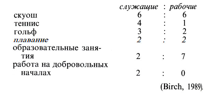 Рис. 4.3. Влияние социальной принадлежности на выбор форм досуга. (Birch, 1979)