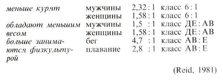 Таблица 10.6 Заболеваемость и социальные классы (Великобритания)