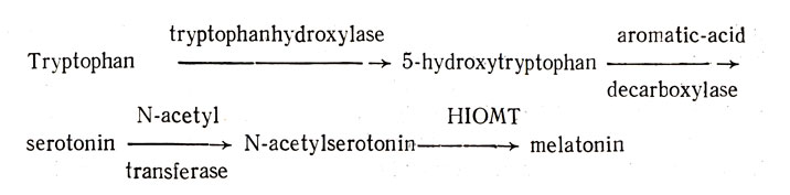 23. Axelrod, J., Shein, H. M., and Wurtman, R.J. Stimulation of C14 melatonin synthesis from C14-tryptophan by noradrenaline in rat pineal in organ culture. Proceedings of the National Academy of Sciences, U.S.A. 62: 544, 1969.